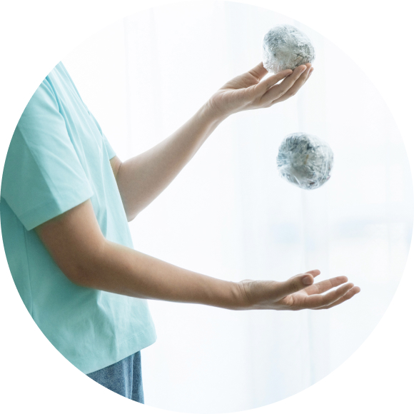 避難生活の中で、子どものストレスも大きな問題となります。屋内や人が多い場所でも、危険性が少ない気を紛らせることができるおもちゃとして活用できます。アイデア次第でいろいろなおもちゃに。