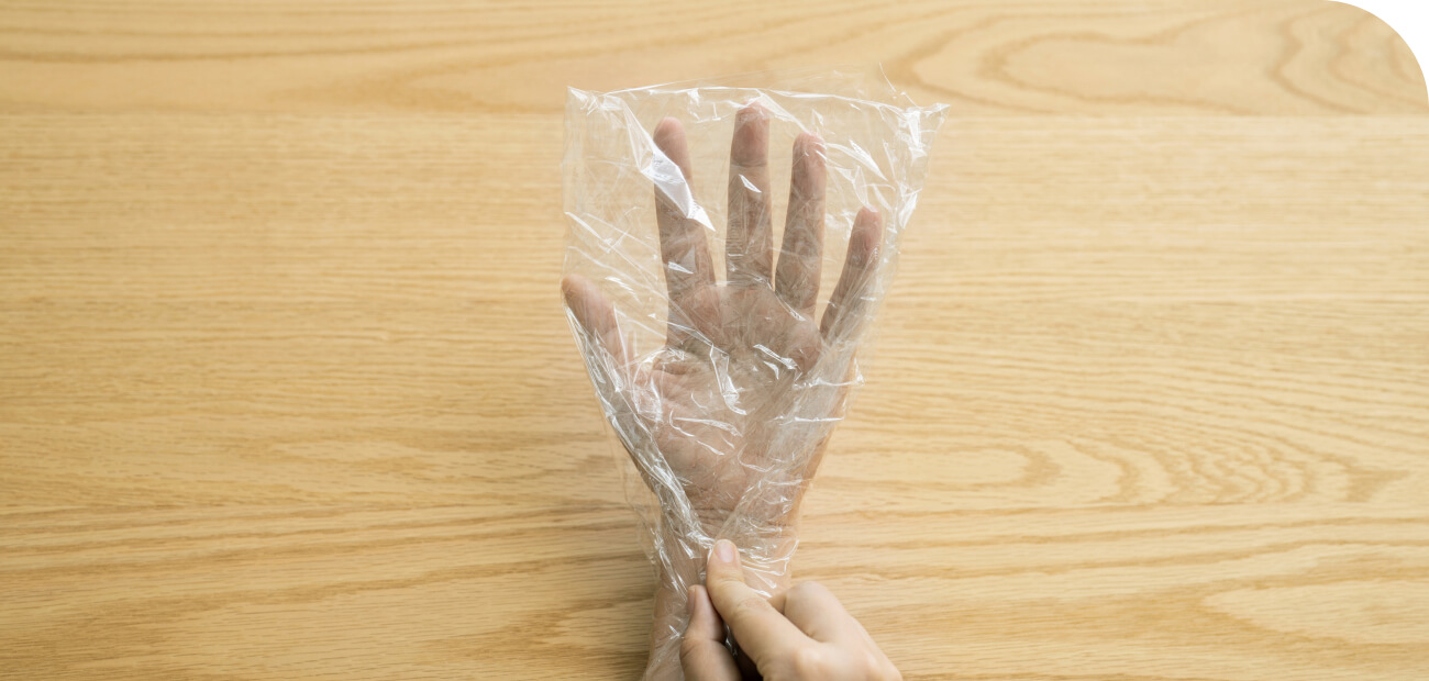 被災時や避難時において、衛生的に過ごすことは非常に重要です。とくに湿度のある汚れたものに触れなければならない場合に、手袋の簡易的な代用品として使用いただくと、直接肌に触れることなく処理することができます。 ※完全防水ではないので、あくまで簡易的な対策としてご使用ください。