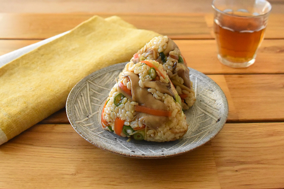 玄米と秋の味覚の混ぜごはんおにぎり