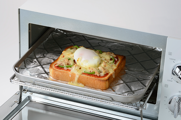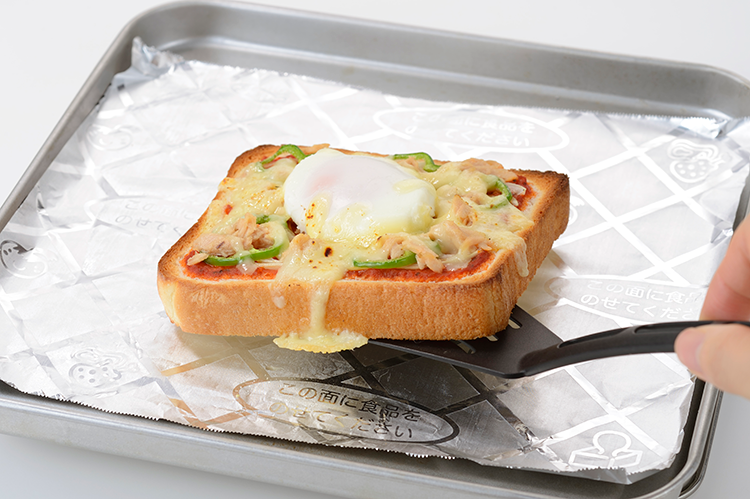 STEP 02 Rakucho(ラクッチョ)フライパン用ホイルシートを敷いたトースターでチーズが溶けて焼き色がつくまで焼く。