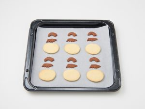 STEP 10 天板にキチントさんクッキングシートを敷き、3-①②③の生地を並べ、170℃に予熱したオーブンで約15分焼き、冷ましておきます。