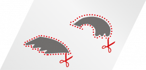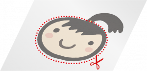 STEP 06 キチントさんの髪の毛(前髪とポニーテール)の下絵の上にキチントさんクッキングシートを重ねて一緒にはさみで切り、型紙を作ります。