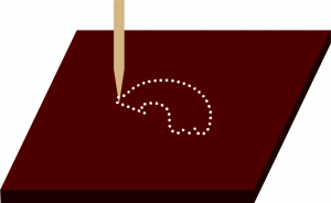 STEP 09 1-③のココア生地を麺棒で約5mm厚さに延ばし、2-②のポニーテールの型紙をのせ、つまようじ等でなぞって切り出します。