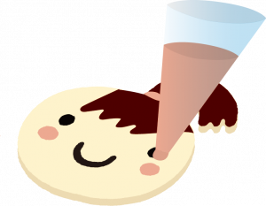 STEP 11 キチントさんクッキングシートでコルネを作り、約50℃の湯せんで溶かしたチョコレートを入れる。顔と髪の毛をチョコレートで貼り合わせる。顔に目、口、頬を描く。髪の毛に髪留めを描きます。