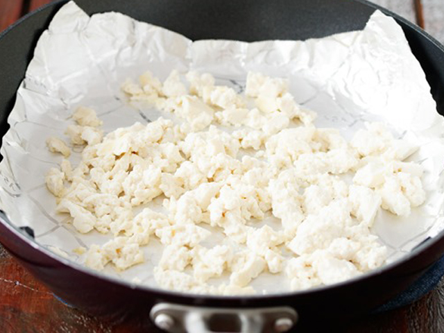 ポロポロになったら一旦ホイルシートごと器に取り出します。