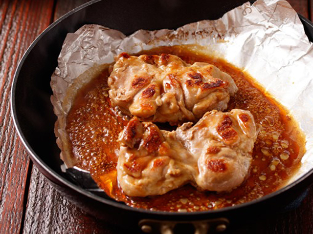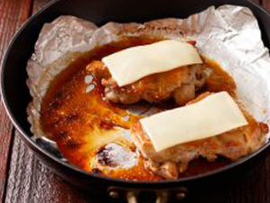 焼いてタレを絡め、チーズを乗せて蒸し焼きにするだけ!