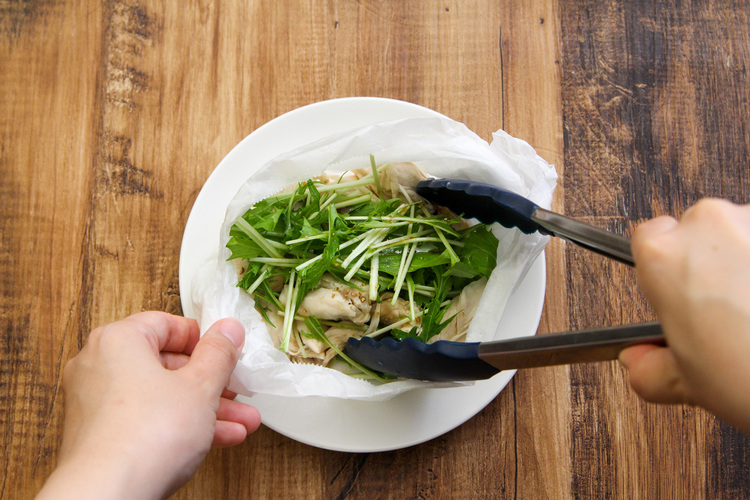 ・筋取り済のささみを使用。筋ありの場合は取ってから使用してください。 ・水菜は4cm幅に切ってください。