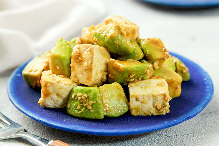 よだれ鶏のたれで食べるこのアボカドと豆腐のサラダがとんでもなく美味しい。