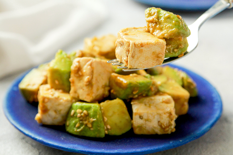 よだれ鶏のたれで食べるアボカドと豆腐のやみつきサラダ